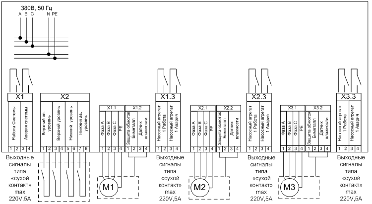 Процесс включения насоса повторяется до тех пор, пока не отключится сигнализатор верхнего уровня или не останется доступных насосов.